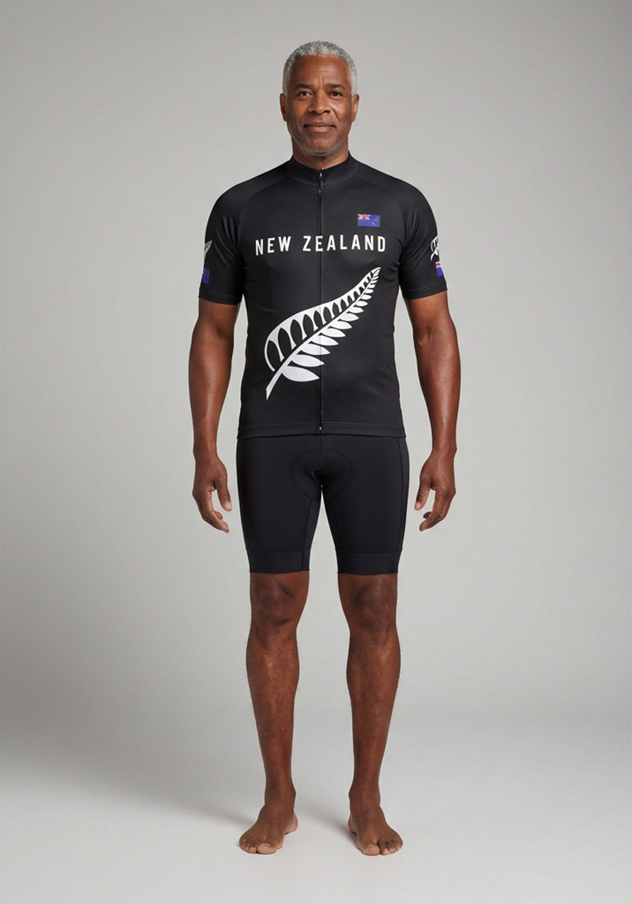 طقم ركوب الدراجات الجديد من نيوزيلندا بعلم الفرن الفضي الوطني
