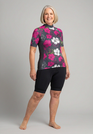 قميص قصير الأكمام للدراجات النسائي بنقشة الزهور