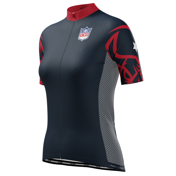 OCG presents the Women's Houston Football Short Sleeve Cycling Jersey so you can roll up to your next ride in style and feel the comfort of a female cut jersey.