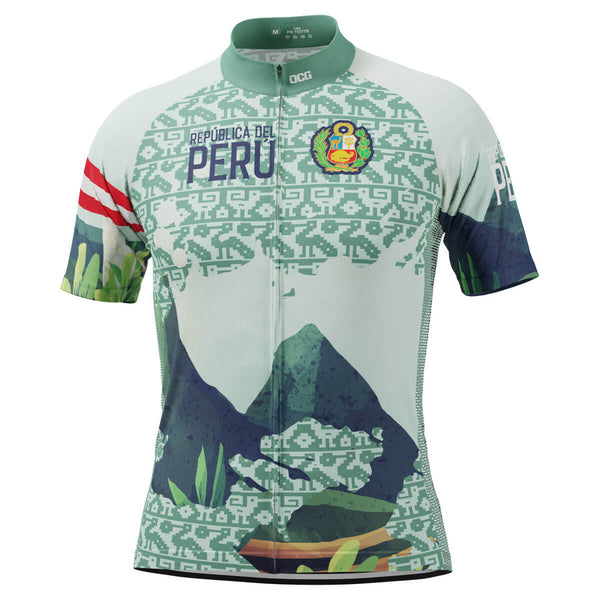 Men's Peru Flag Caral Pyramids National Flag Short Sleeve Cycling Jersey