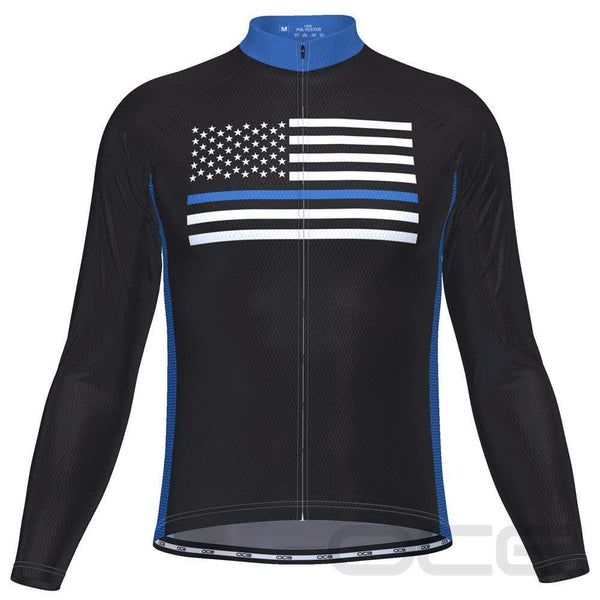Men's Thin Blue Line American Flag Long Sleeve Cycling Jersey