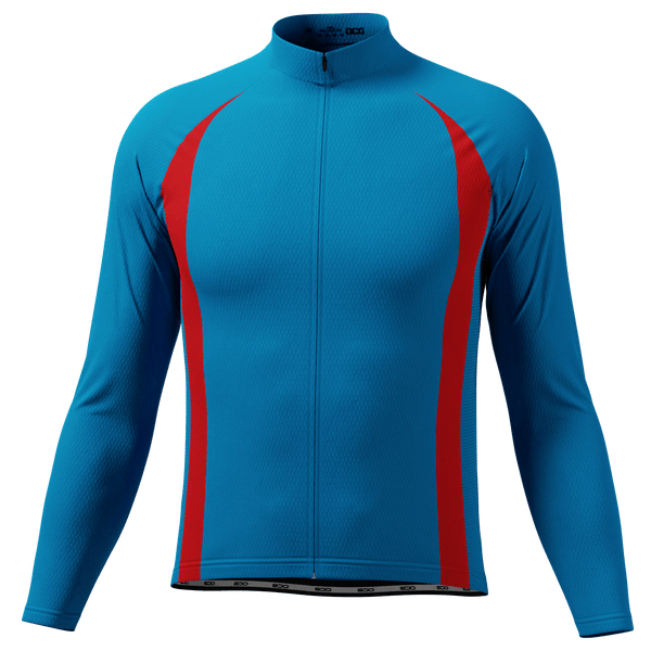Men's High Viz White Polka Dots on Blue Long Sleeve Cycling Jersey