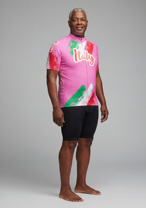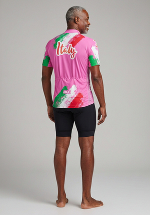 Inspiriert von dem Trikot, das das 100-jährige Jubiläum des Giro d'Italia im Jahr 2017 markierte, bringt dieses Italien 100 Jahre Pink Cycling Jersey ein hochsichtbares pinkes Design mit den Farben der italienischen Flagge.