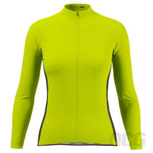 Womens High Viz Plain Colour Long Sleeve Cycling Jersey - Lime - front view