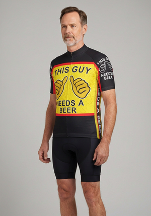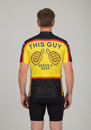 The Men's This Guy Needs a Beer Short Sleeve Cycling Jersey at OCG is one of our more popular beer cycling jerseys.
