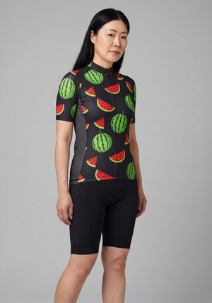 When you buy the Women's Watermelon Black Short Sleeve Cycling Jersey at OCG you know you will be getting a unique design on a comfortable, soft-feel, moisture-wicking jersey cut specifically for the women's body.