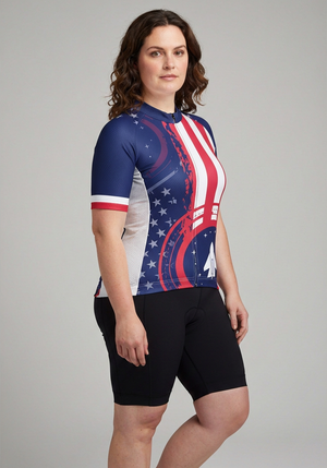 You could pay double the price for an ill-fitting jersey elsewhere, or you could wear this Women's Air Force American Flag Armed Forces Cycling Jersey that makes other cyclists take a second look and fit your body shape.