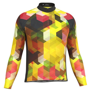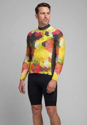 Maillot de cyclisme à manches longues en mosaïque haute visibilité pour hommes