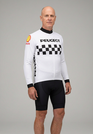 Basato sulle squadre di ciclismo Peugeot francesi degli anni '60, '70 e '80, arriva il Mens Peugeot Shell Retro1983 Long Sleeve Cycling Jersey da OCG.