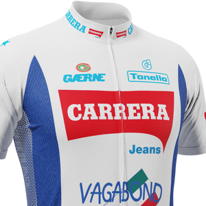 The Men's Carrera Cycling Jersey in pristine white combines innovative design with top-tier comfort to enhance every ride. Engineered for both leisure cyclists and competitive riders, this jersey is crafted from durable LEMBO 140 GSM moisture-wicking polyester, ensuring you stay dry and focused on the road ahead.