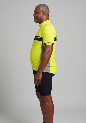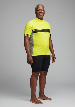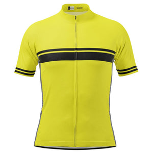 Męska klasyczna żółta koszulka kolarska z czarnym paskiem i krótkim rękawem