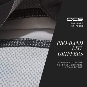 - Grippers: 45mm silicon Pro-Band leg grippers. Low irritant silicone waist gripper.