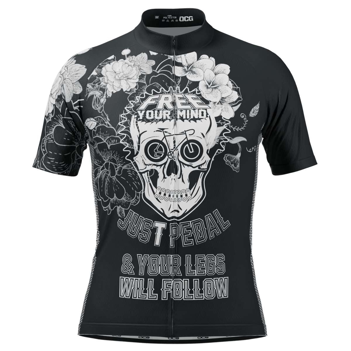 Men's Free Your Mind Just Pedal Black Cycling Jersey Features