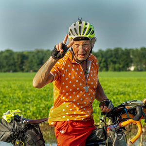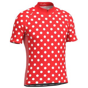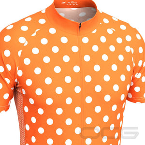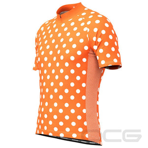 This Men's High Visibility Polka Dot Short Sleeve Cycling Jersey is made from high-quality Cool-Max breathable fabric with a hidden full-length zip and three reinforced back pockets.