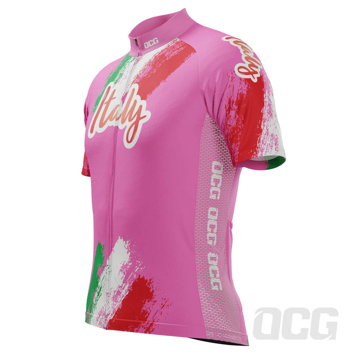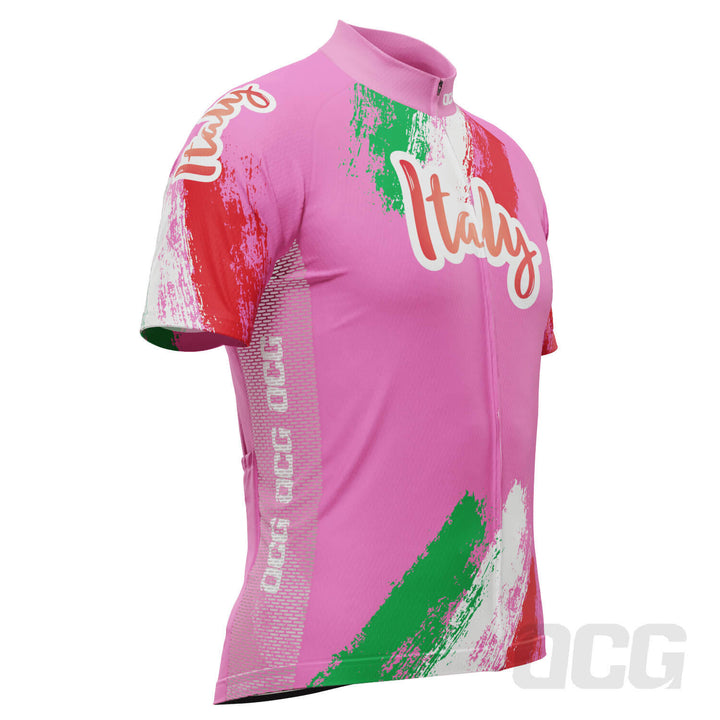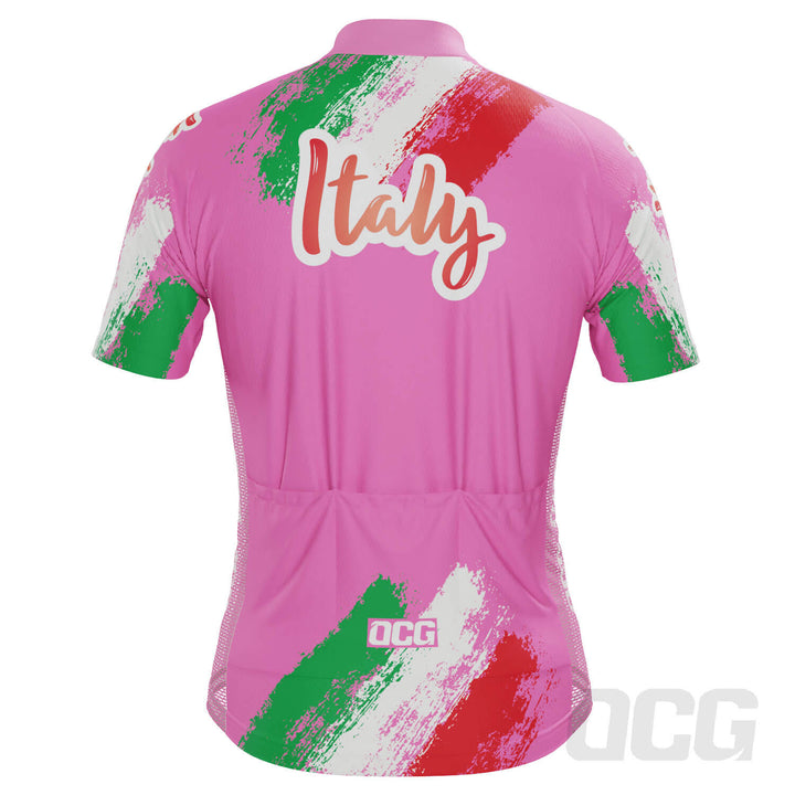 Inspired by the jersey that marked the 100th year of the Giro d'Italia in 2017, this Italy 100 Years Pink Cycling Jersey brings a high visibility pink design with Italian flag colors.