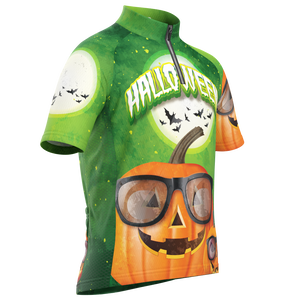 Kid's Halloween Pumpkin Glasses Short Sleeve Cycling Jersey