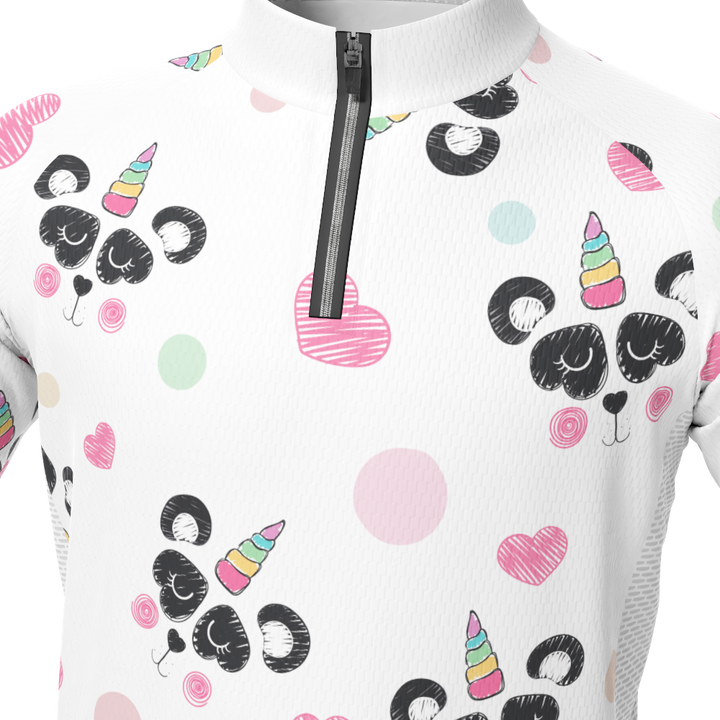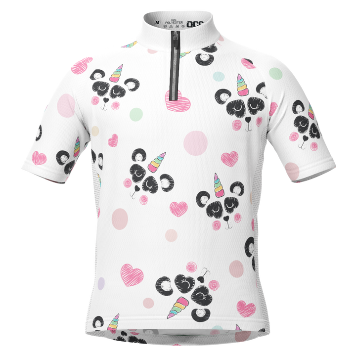 Kid's I Love Panda Unicorn Short Sleeve Cycling Jersey Features