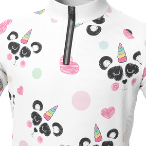 Kid's I Love Panda Unicorn Short Sleeve Cycling Jersey Features