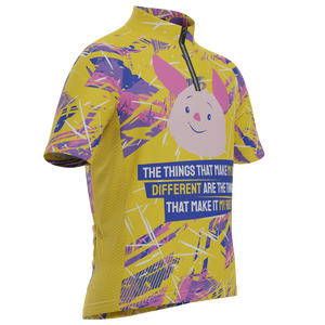 All Piglet's Ride jerseys feature a quarter-zip to avoid unwanted zipper accidents and allow our mini-cyclists to wear their favorite designs on and off the bike.