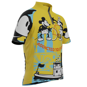 The Steamboat Willie-Addicted to Cycling range is exclusive to Online Cycling Gear where you get a no-questions-asked exchange policy, easy returns, free shipping worldwide, and real-person service.