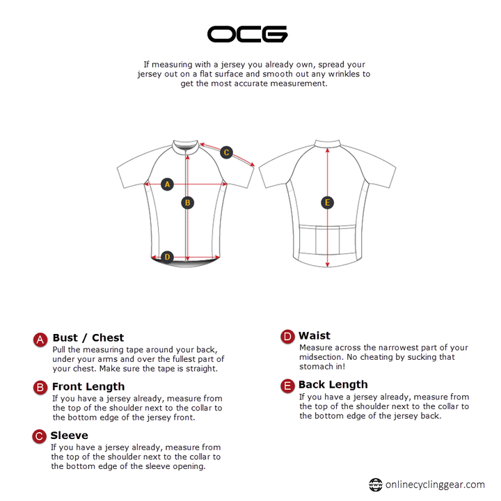 Washing instruction icons are printed on the inside of the collar of all OCG jerseys. Following these instructions will maximize the life of your OCG gear.