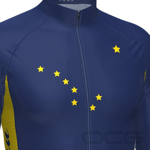 Whether you want to not feel the bite of the winter chill, or you just need some extra protection with a light-weight long-sleeve jersey, this Men's Alaska Flag Long Sleeve Cycling Jersey will do the trick.