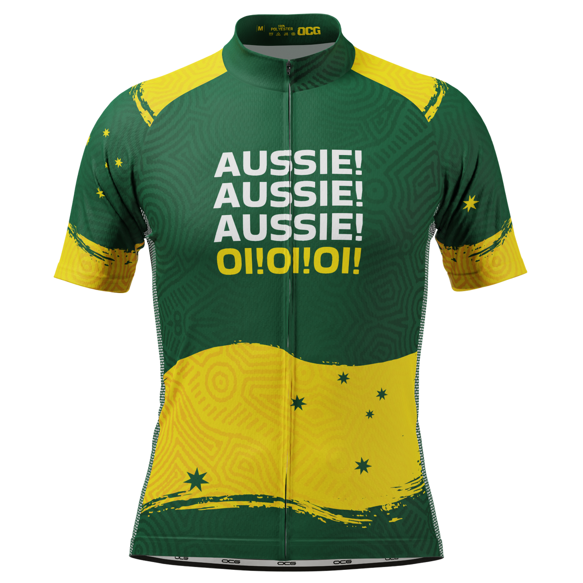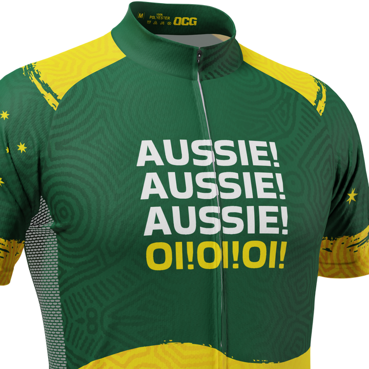 OCG presents the Men's Aussie Aussie Aussie Short Sleeve Cycling Jersey so you can roll up to your next ride with confidence and style.