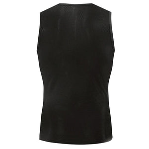 The Men's Black Mesh Sleeveless Cycling Base Layer is made from a lightweight moisture-wicking polyester and elastane blend to help manage core temperatures while not adding bulk under your jersey.