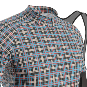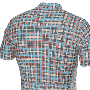 Men's Blue Plaid Checkered Short Sleeve Cycling Kit Details