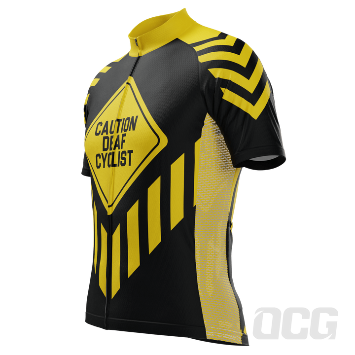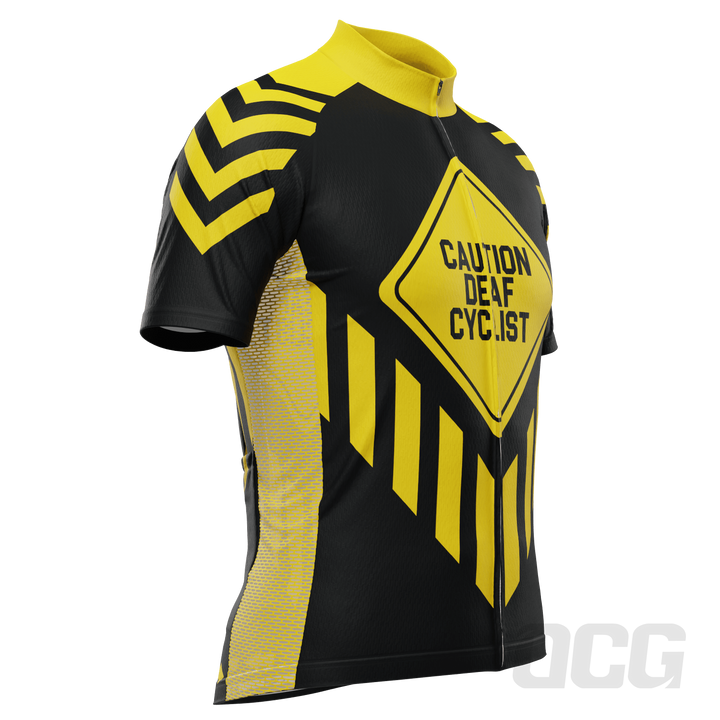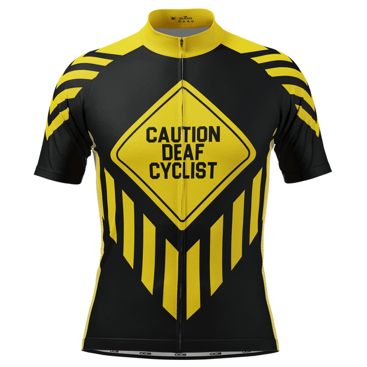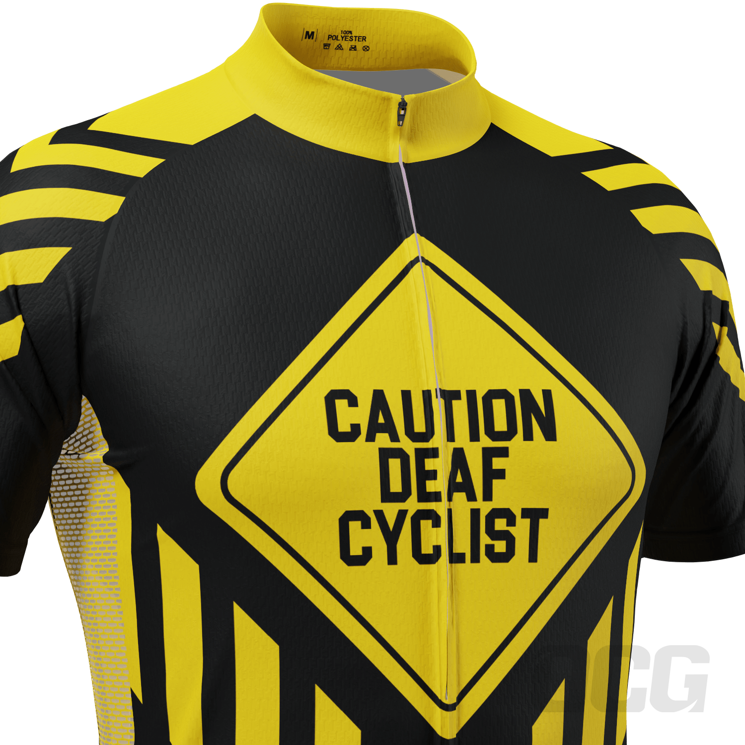 Men's Caution Deaf Cyclist Short Sleeve Cycling Jersey Details