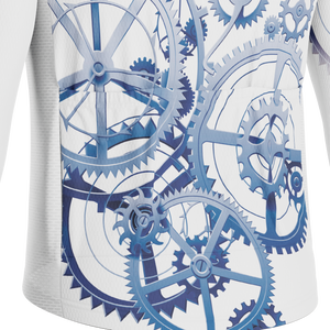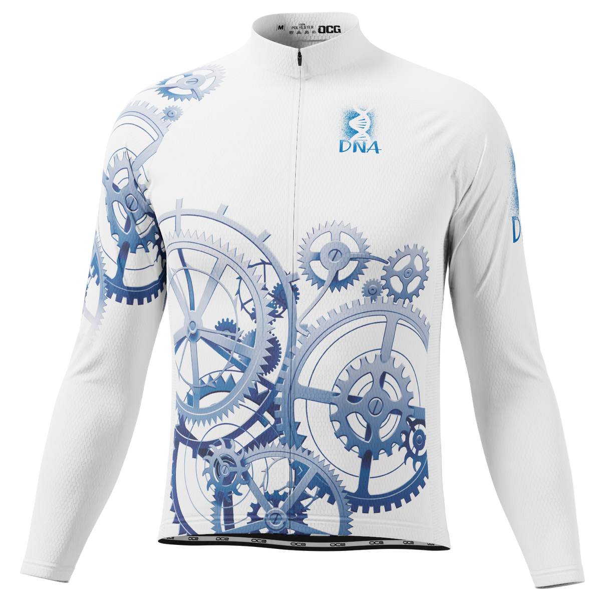 Introducing the Men's DNA White Long Sleeve Cycling Shirt from Online Cycling Gear. Immerse yourself in the performance of a pro cyclist while enjoying the comfort of your favorite casual shirt. Whether you're navigating bustling city streets, conquering rugged trails, or powering through gravel paths and morning runs, this shirt is your ultimate companion. Versatile enough for cycling, hiking, running, or stylish athleisure wear, it caters to all your active pursuits.