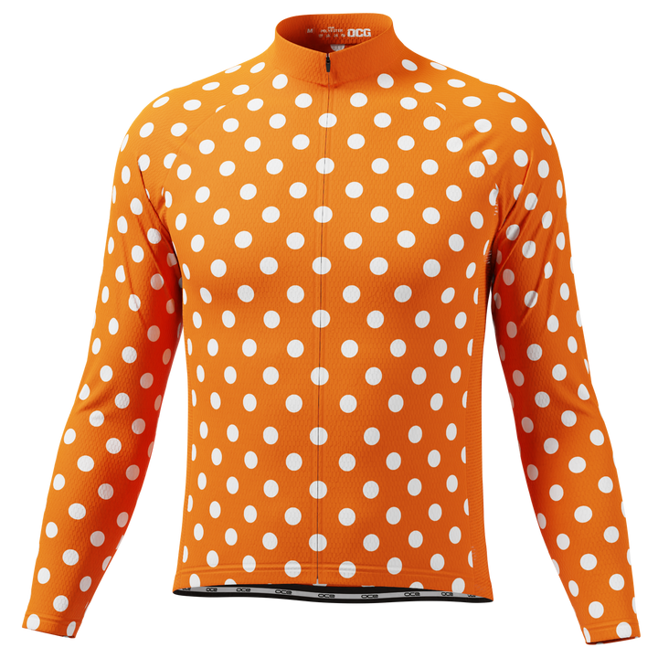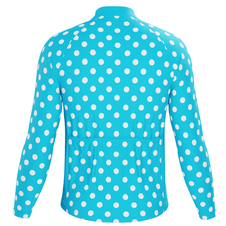 OCG brings OCG Originals the Men's High Viz White Polka Dots on Blue Long Sleeve Cycling Jersey to keep you warm and protected on your next ride.