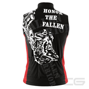 The Men's Honor the Fallen Sleeveless Cycling Jersey features a moisture-wicking LEMBO 140 GSM polyester, cooling 110GSM mesh side panels, and reinforced stitched back pockets to go with the cooling sleeveless design.
