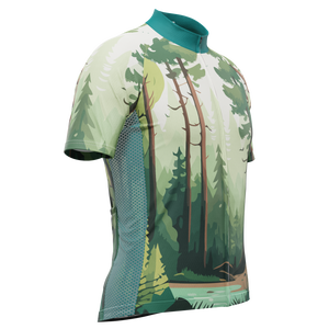 The Men's I Love Mother Earth Short Sleeve Cycling Jersey features a moisture-wicking LEMBO 140 GSM polyester, cooling 110GSM mesh side panels, and reinforced stitched back pockets.