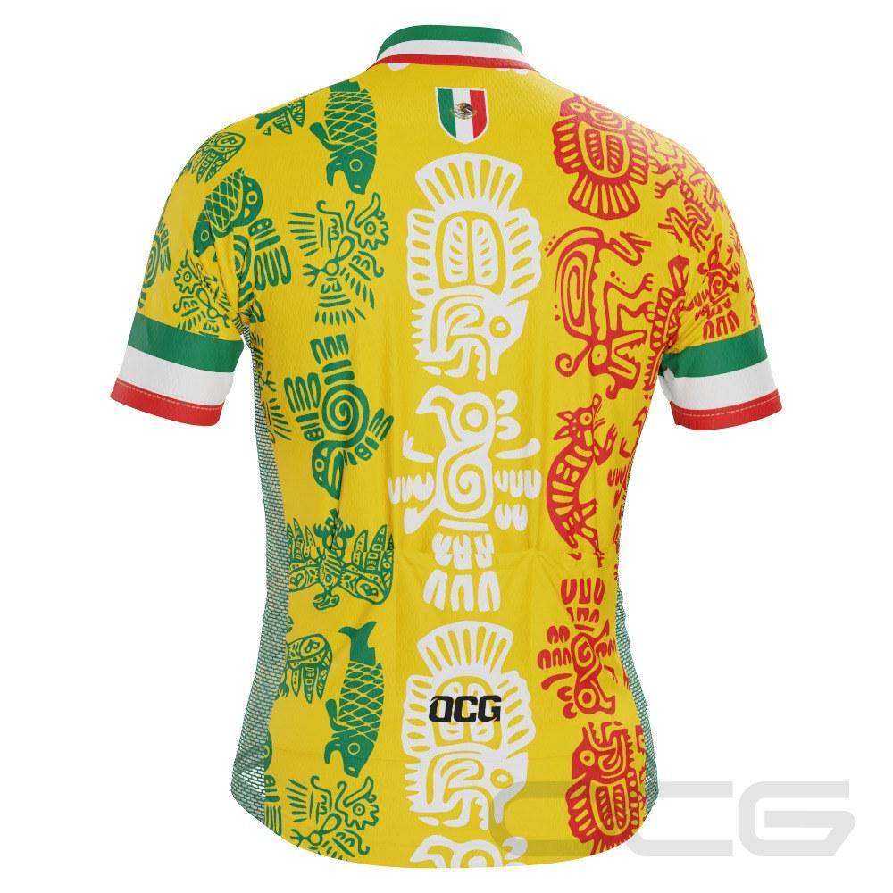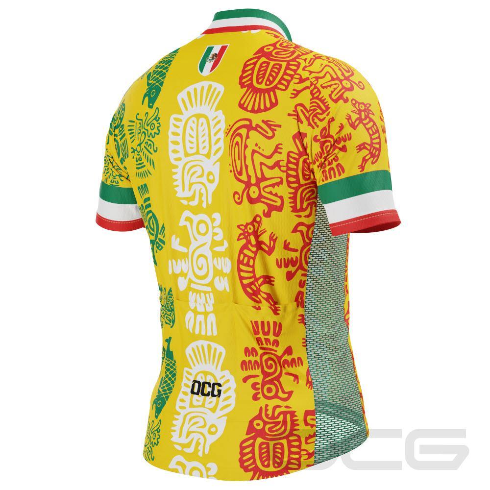 The Men's Mexico Orale Short Sleeve Cycling Jersey features a moisture-wicking LEMBO 140 GSM polyester, cooling 110GSM mesh side panels, and reinforced stitched back pockets.