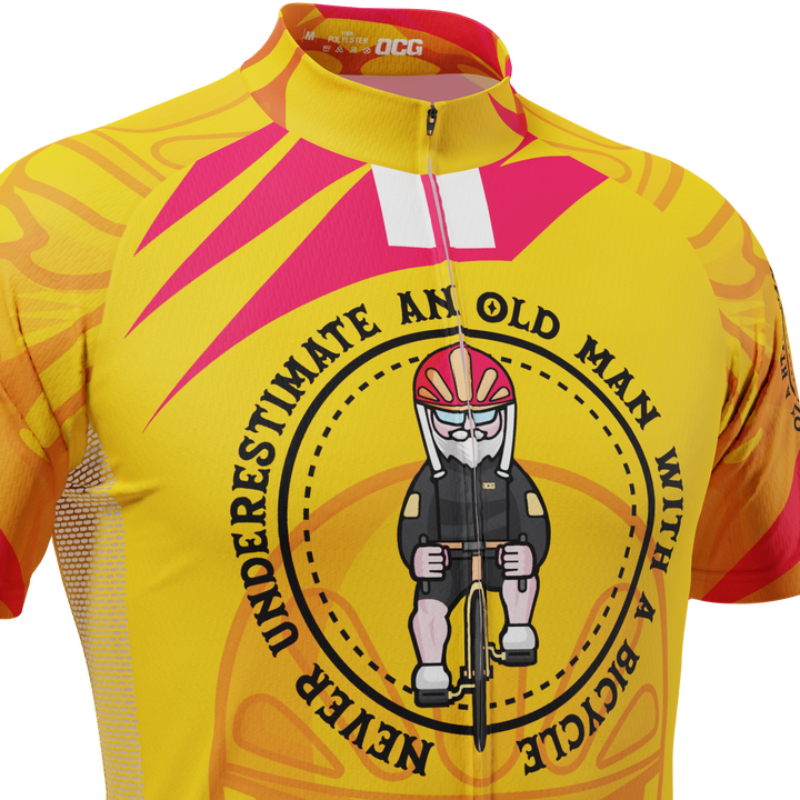 OCG and OCG Originals have come together to bring the Men's Never Underestimate Old Man Bicycle Short Sleeve Cycling Jersey so you can roll up to your next ride with confidence and style.