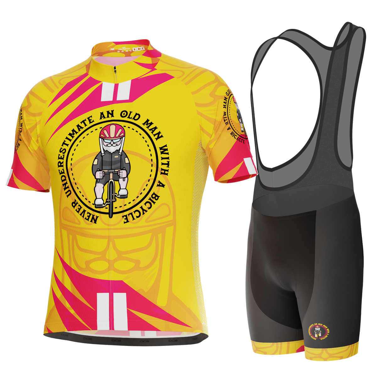 OCG and OCG Originals have come together to bring the Men's Never Underestimate Old Man Bicycle Short Sleeve Cycling Kit so you can roll up to your next ride with confidence and style.