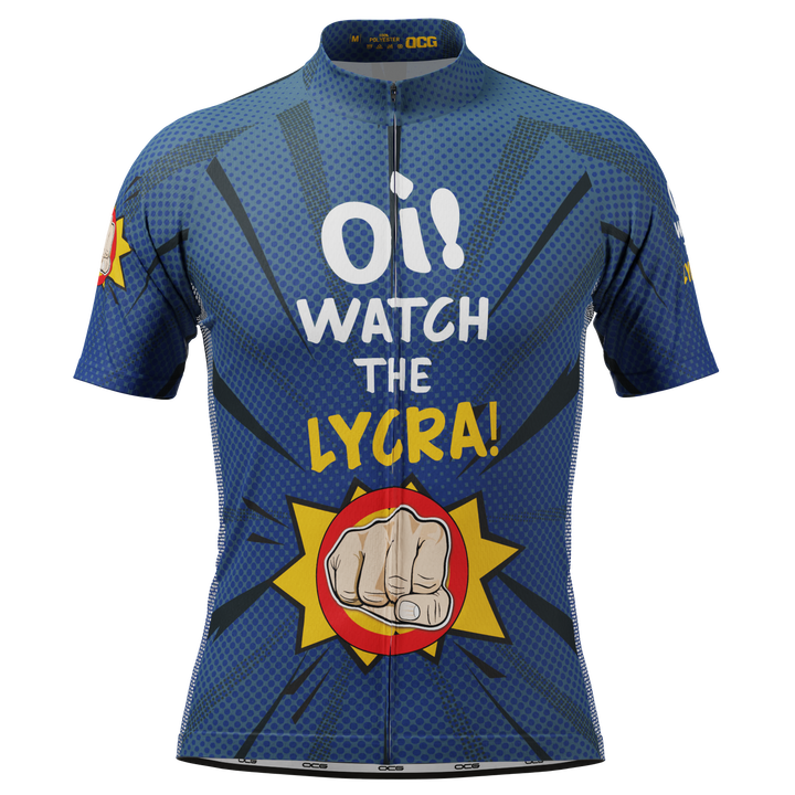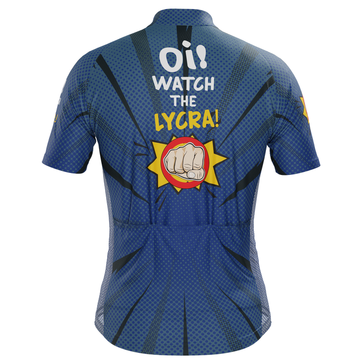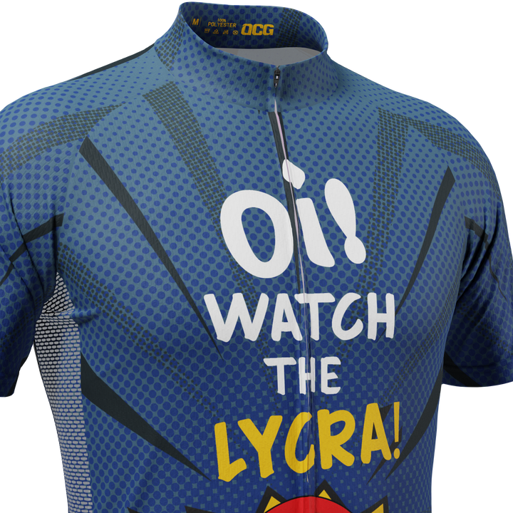 Men's Oi! Watch the Lycra! Short Sleeve Cycling Jersey Details