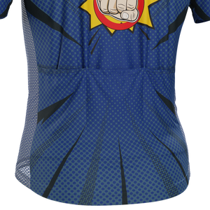 The Men's Oi! Watch the Lycra! Short Sleeve Cycling Jersey features a moisture-wicking LEMBO 140 GSM polyester, cooling 110GSM mesh side panels, and reinforced stitched back pockets.