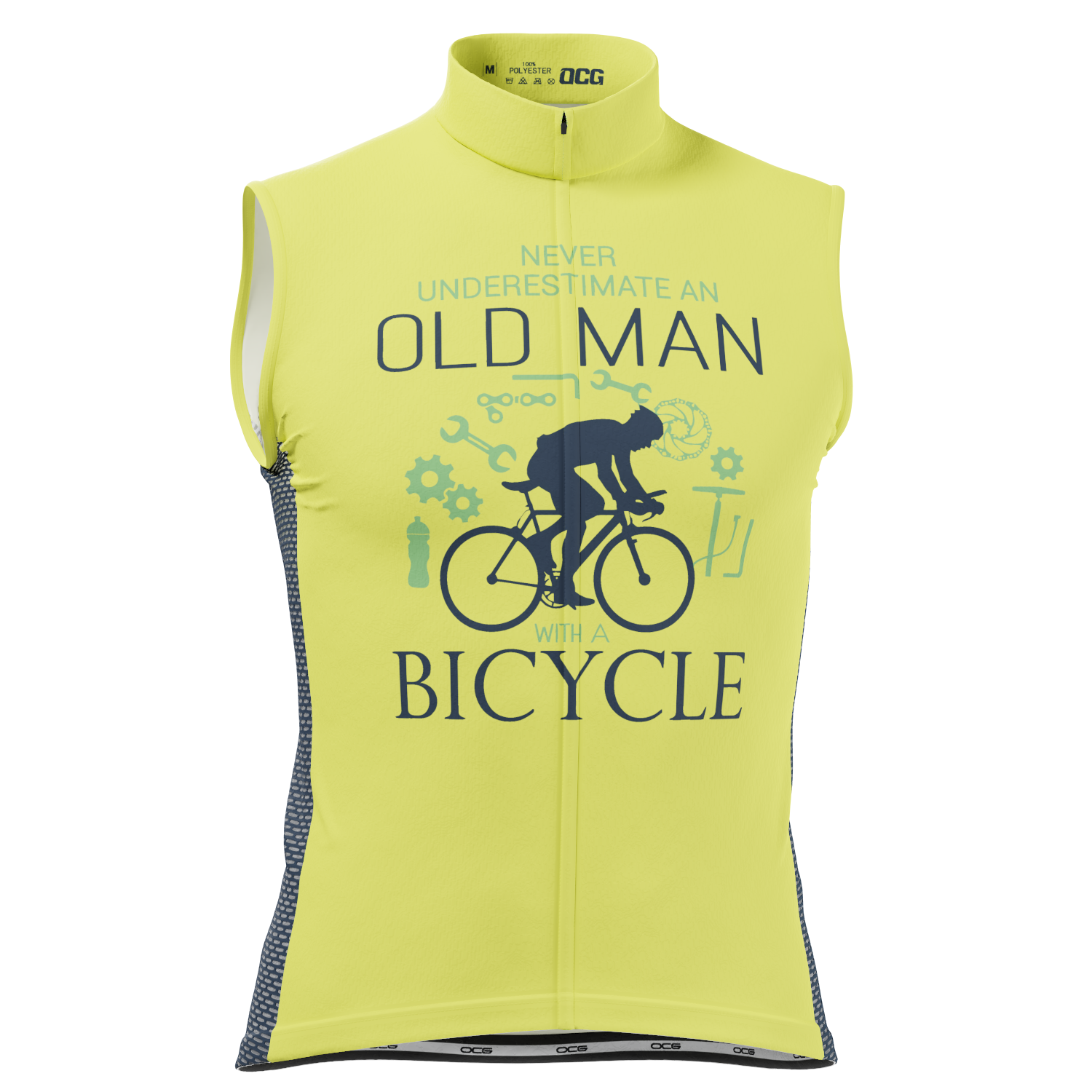 OCG Originals brings the Men's Old Man Bicycle Sleeveless Cycling Jersey so you can roll up to your next ride staying cool and rocking a unique style.