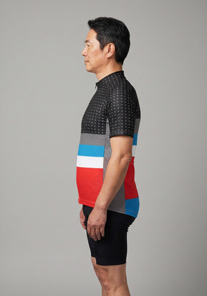 Men's Tri-Stripe Polka Dot Short Sleeve Cycling Jersey