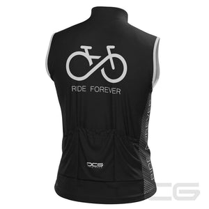 The Men's Ride Forever Infinity Sleeveless Cycling Jersey features a moisture-wicking LEMBO 140 GSM polyester, cooling 110GSM mesh side panels, and reinforced stitched back pockets to go with the cooling sleeveless design.