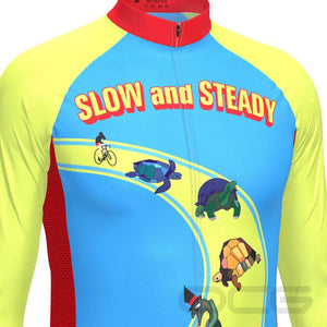 Whether you want to not feel the bite of the winter chill, or you just need some extra protection with a light-weight long-sleeve jersey, this Men's Slow and Steady Long Sleeve Cycling Jersey will do the trick.