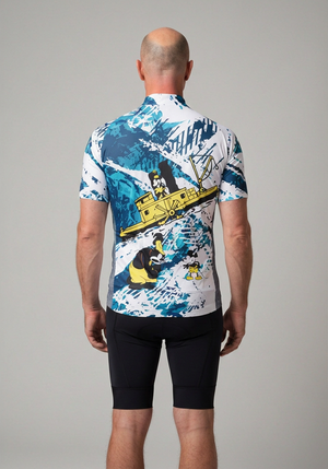OCG and OCG Originals have come together to bring the Men's Steamboat Willie in The Sea Short Sleeve Cycling Jersey so you can roll up to your next ride with confidence and style.