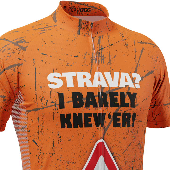 OCG presents the Men's Strava? I Barely Knew 'Er! Short Sleeve Cycling Jersey so you can roll up to your next ride with confidence and style.