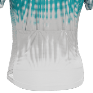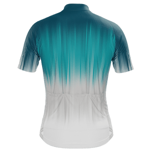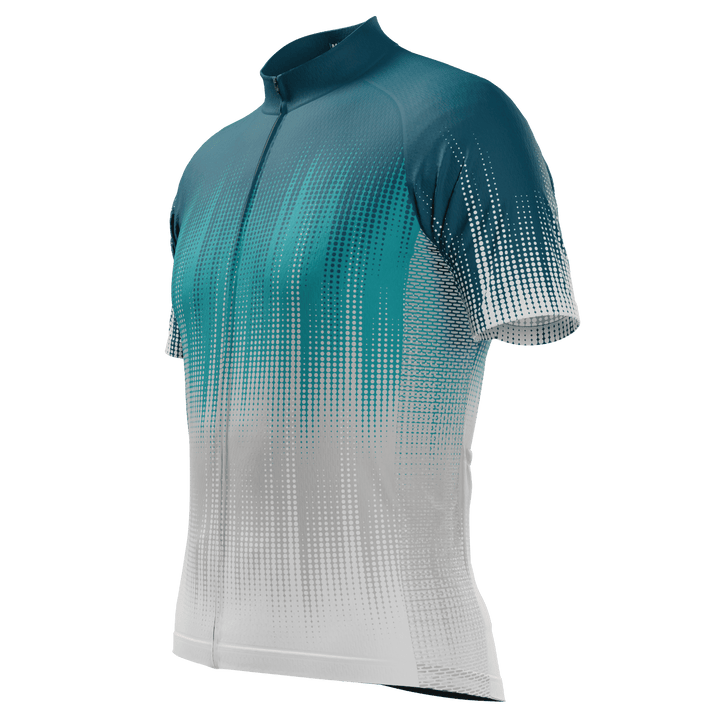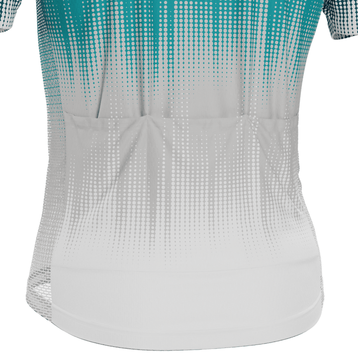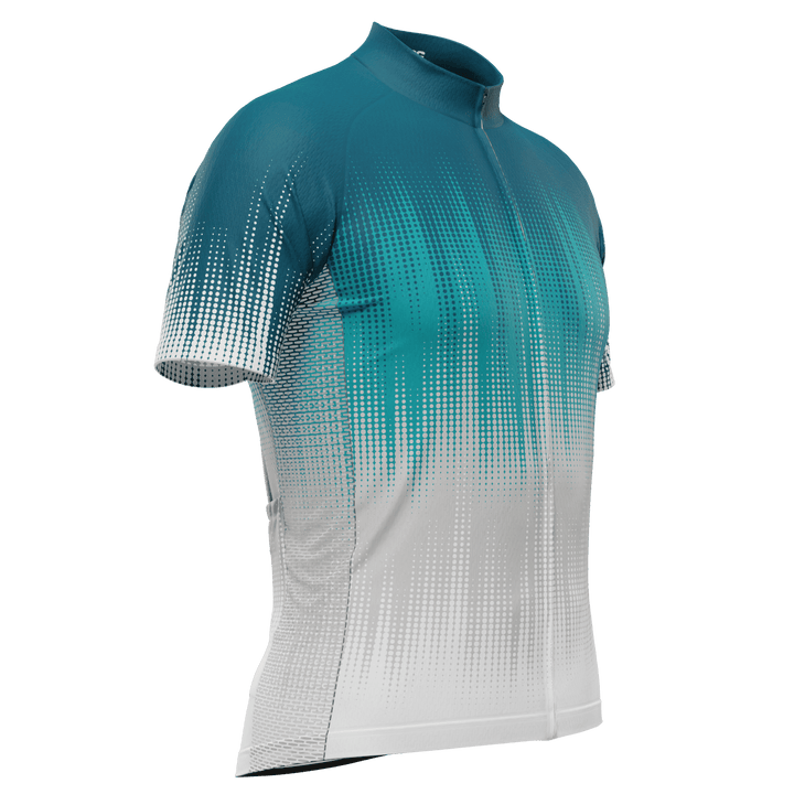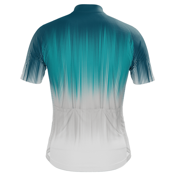 The Men's Streaky Short Sleeve Cycling Jersey features a moisture-wicking LEMBO 140 GSM polyester, cooling 110GSM mesh side panels, and reinforced stitched back pockets.