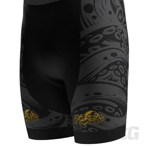 The Men's The Black Octopus Short Sleeve Cycling Kit features a moisture-wicking LEMBO 140 GSM polyester jersey body, cooling 110GSM mesh side panels, and reinforced stitched back pockets.