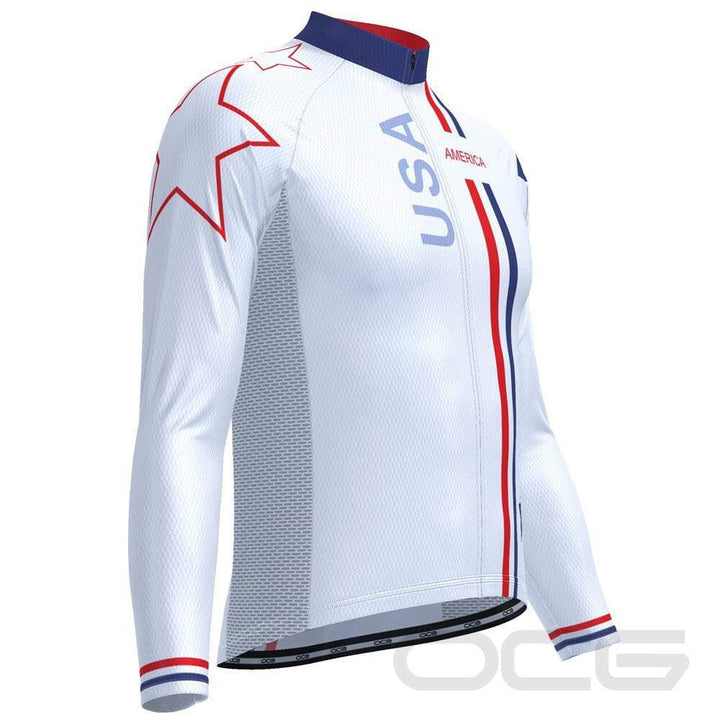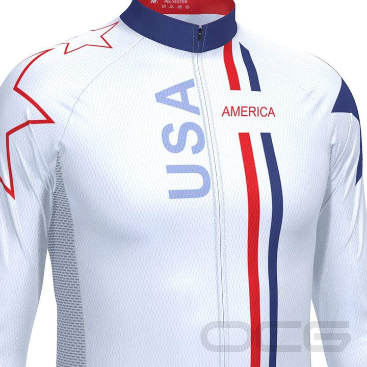 Whether you want to not feel the bite of the winter chill, or you just need some extra protection with a light-weight long-sleeve jersey, this Men's USA Star Long Sleeve Cycling Jersey will do the trick.