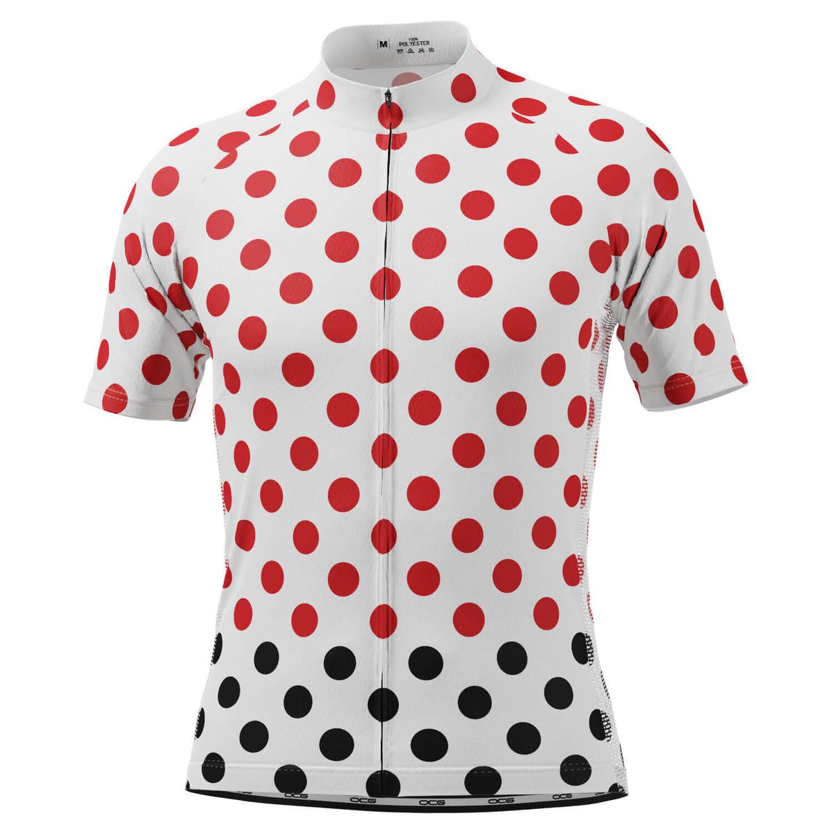 Men's White Polka Dot Short Sleeve Cycling Jersey Features