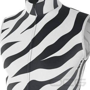The Men's White Tiger Sleeveless Cycling Jersey features a moisture-wicking LEMBO 140 GSM polyester, cooling 110GSM mesh side panels, and reinforced stitched back pockets to go with the cooling sleeveless design.